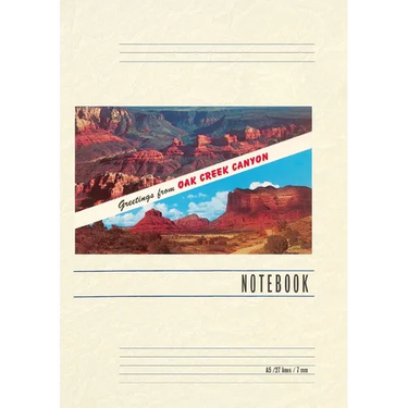 Introducing the Vintage Notebook: Greetings from Oak Creek Canyon, a delightful companion for all your writing endeavors. Featuring 150 lined pages, immerse yourself in the charm of a classic vintage travel postcard illustration adorning its cover. With its full-color decorative vintage art and versatile functionality, this notebook is an ideal companion for journaling, planning trips, tackling writing projects, organizing to-do lists, or simply capturing thoughts on any occasion. Found Image Press Vintage Journals take you on a nostalgic journey, featuring carefully curated vintage art that celebrates your favorite places, hobbies, and interests. The front cover showcases a captivating classic piece of art sourced from our vast collection of over 60,000 pictures, meticulously selected to transport you to a bygone era. Immerse yourself in the allure of the past and thoughtfully crafted to inspire and accompany your creative ventures. Details: A5 5.8 x 8.2 inches; 150 lined opaque pages; Soft matte finish; Soft matte finish