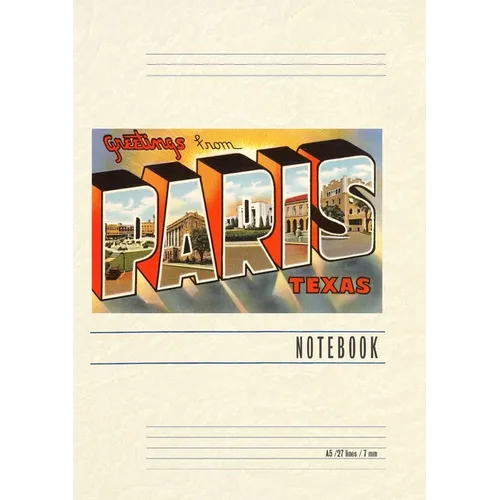 Introducing the Vintage Notebook: Greetings from Paris, Texas, a delightful companion for all your writing endeavors. Featuring 150 lined pages, immerse yourself in the charm of a classic vintage travel postcard illustration adorning its cover. With its full-color decorative vintage art and versatile functionality, this notebook is an ideal companion for journaling, planning trips, tackling writing projects, organizing to-do lists, or simply capturing thoughts on any occasion. Found Image Press Vintage Journals take you on a nostalgic journey, featuring carefully curated vintage art that celebrates your favorite places, hobbies, and interests. The front cover showcases a captivating classic piece of art sourced from our vast collection of over 60,000 pictures, meticulously selected to transport you to a bygone era. Immerse yourself in the allure of the past and thoughtfully crafted to inspire and accompany your creative ventures. Details: A5 5.8 x 8.2 inches; 150 lined opaque pages; Soft matte finish; Soft matte finish