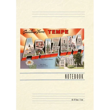 Introducing the Vintage Notebook: Greetings from Tempe, Arizona, a delightful companion for all your writing endeavors. Featuring 150 lined pages, immerse yourself in the charm of a classic vintage travel postcard illustration adorning its cover. With its full-color decorative vintage art and versatile functionality, this notebook is an ideal companion for journaling, planning trips, tackling writing projects, organizing to-do lists, or simply capturing thoughts on any occasion. Found Image Press Vintage Journals take you on a nostalgic journey, featuring carefully curated vintage art that celebrates your favorite places, hobbies, and interests. The front cover showcases a captivating classic piece of art sourced from our vast collection of over 60,000 pictures, meticulously selected to transport you to a bygone era. Immerse yourself in the allure of the past and thoughtfully crafted to inspire and accompany your creative ventures. Details: A5 5.8 x 8.2 inches; 150 lined opaque pages; Soft matte finish; Soft matte finish