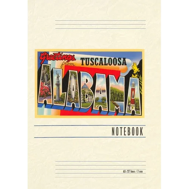 Introducing the Vintage Notebook: Greetings from Tuscaloosa, Alabama, a delightful companion for all your writing endeavors. Featuring 150 lined pages, immerse yourself in the charm of a classic vintage travel postcard illustration adorning its cover. With its full-color decorative vintage art and versatile functionality, this notebook is an ideal companion for journaling, planning trips, tackling writing projects, organizing to-do lists, or simply capturing thoughts on any occasion. Found Image Press Vintage Journals take you on a nostalgic journey, featuring carefully curated vintage art that celebrates your favorite places, hobbies, and interests. The front cover showcases a captivating classic piece of art sourced from our vast collection of over 60,000 pictures, meticulously selected to transport you to a bygone era. Immerse yourself in the allure of the past and thoughtfully crafted to inspire and accompany your creative ventures. Details: A5 5.8 x 8.2 inches; 150 lined opaque pages; Soft matte finish; Soft matte finish