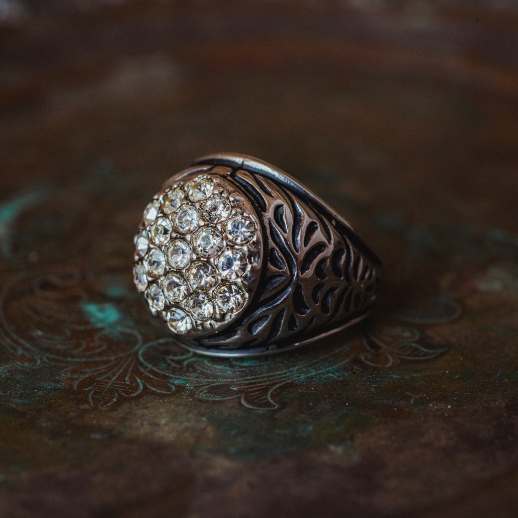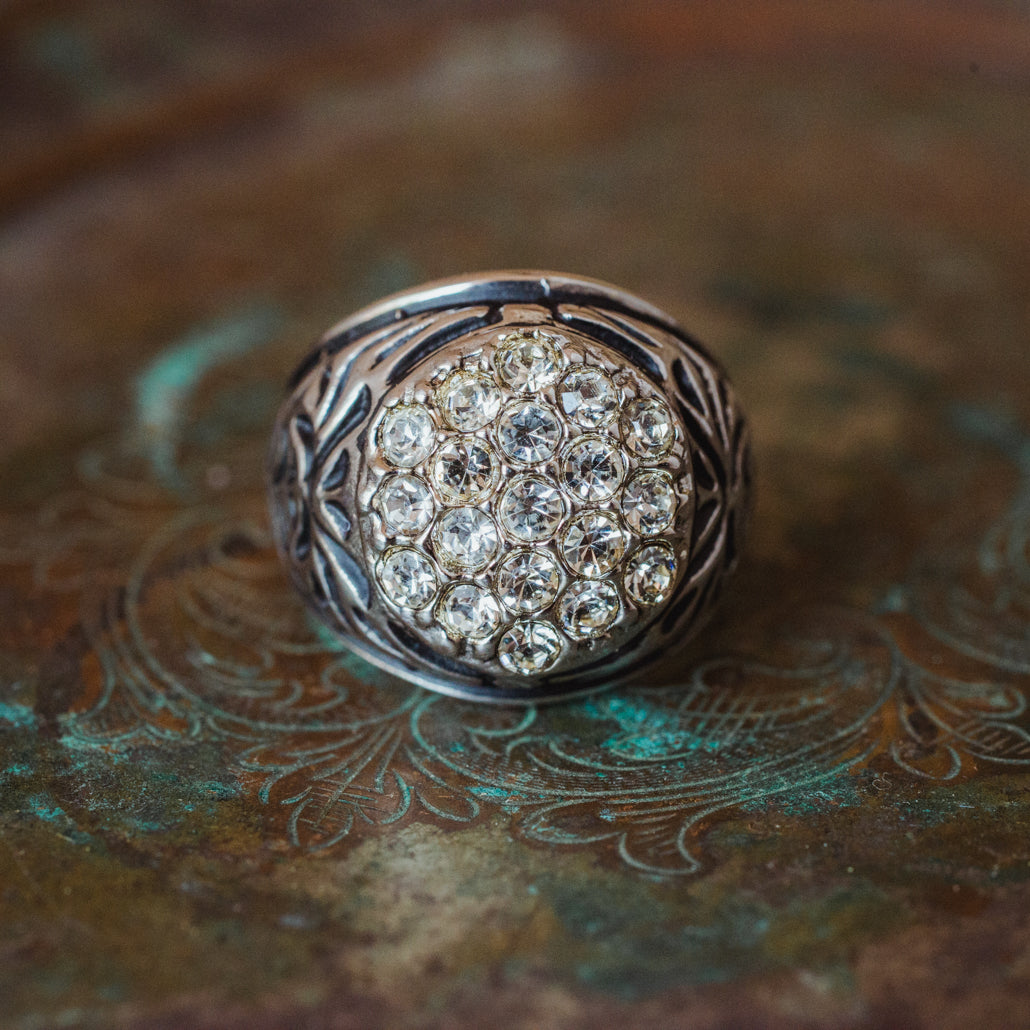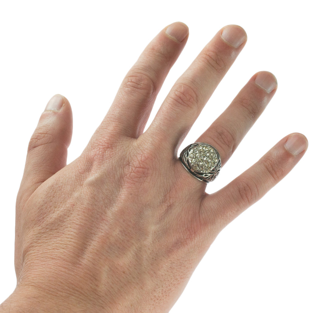 Vintage Men's Ring Clear Austrian Crystals 18k White or Yellow Gold Electroplated Made in USA by PVD Vintage Jewelry