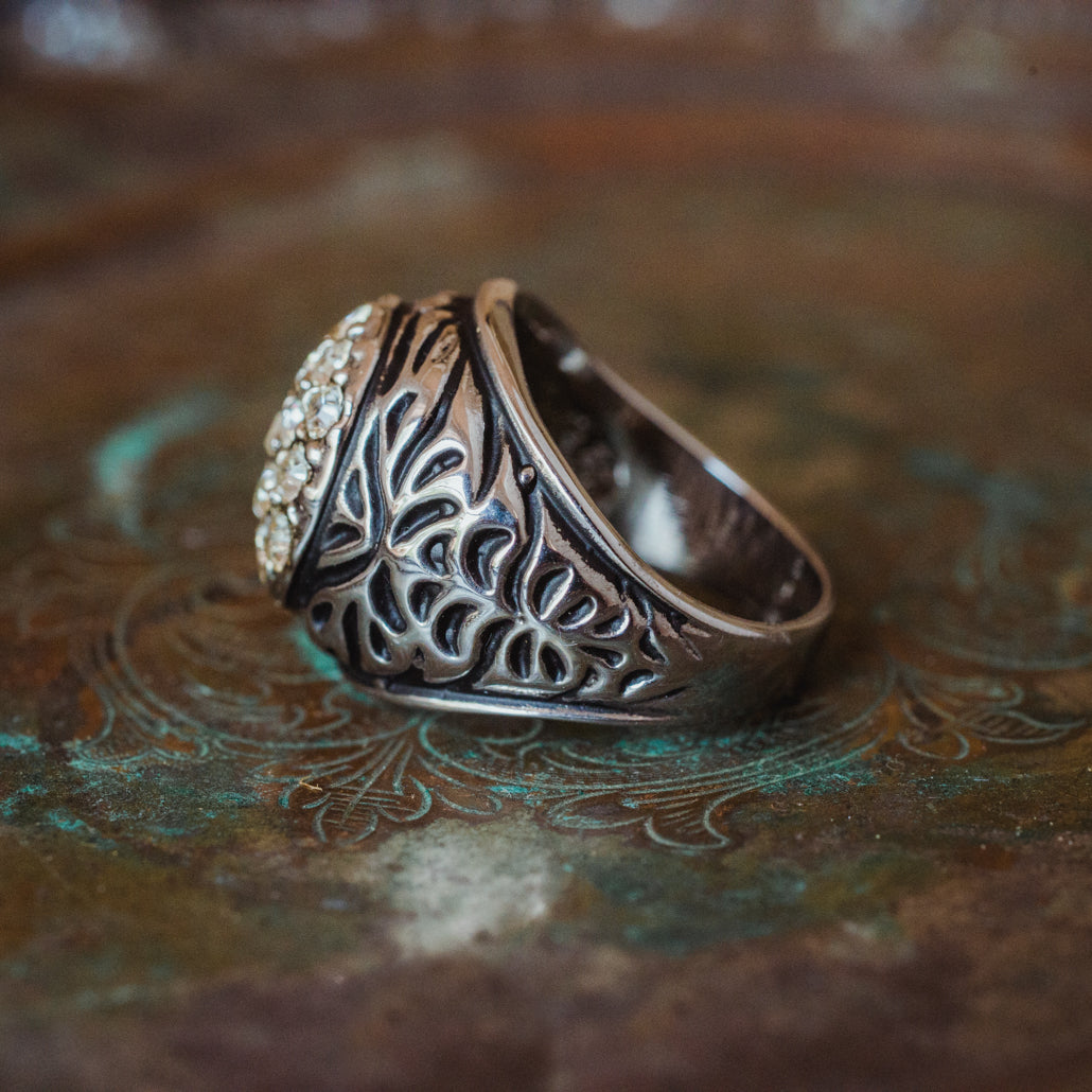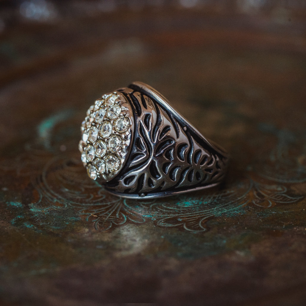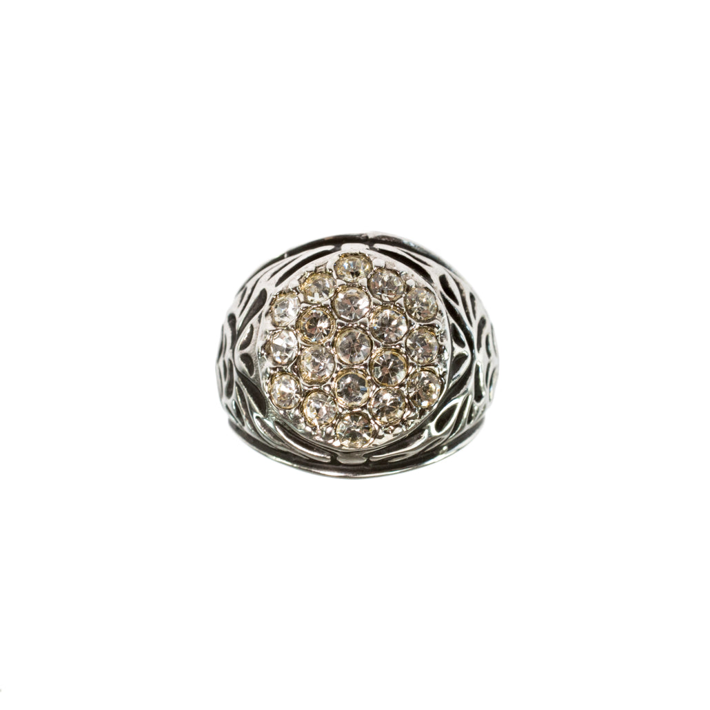 Vintage Men's Ring Clear Austrian Crystals 18k White or Yellow Gold Electroplated Made in USA by PVD Vintage Jewelry