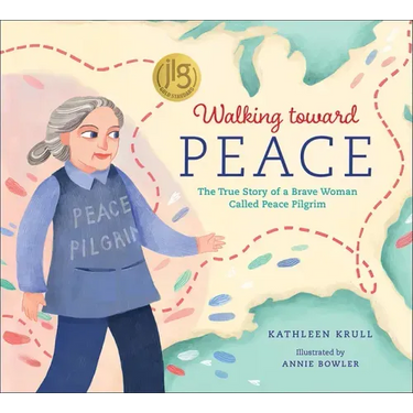 She gave up everything: her home, her possessions, even her real name. She called herself Peace Pilgrim, put on her sneakers, and started off on her quest to walk thousands of miles all around America. Step by step, mile after mile, Peace Pilgrim traveled tirelessly, inviting everyone she met to consider a world where each person and each nation chooses peace.