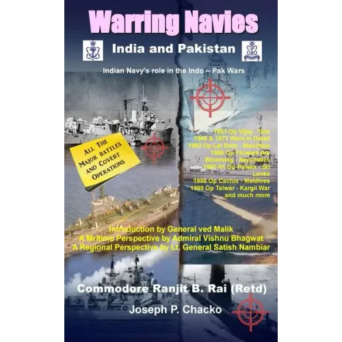 Within the pages of Warring navies is the account of turbulent events that unfolded when the national interests of rising South Asian powers collide over sea. The strategies and tactics of wily political masters and their intrepid sea captains, commanding their ships and loyal sailors, are detailed in stirring sagas of heroism and folly, of triumph and disaster. Important contributions from former Chiefs of Armed Forces provide thought-provoking insights into the significant geo-political potential and the security issues of the Indian Ocean Region. 1961 Op Vijay - Goa; 1965 & 1971 Wars in Detail; 1983 Op Lal Dora - Mauritius; 1986 Op Flowers Are Blooming - Seychelles; 1987-91 Op Pawan - Sri Lanka; 1988 Op Cactus - Maldives; 1999 Op Talwar - Kargil War; .. and much more