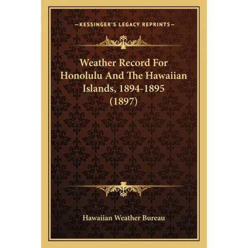 The book titled ""Weather Record For Honolulu And The Hawaiian Islands, 1894-1895"" is a historical record of weather patterns and conditions in Hawaii during the years 1894 and 1895. The book was published in 1897 by the Hawaiian Weather Bureau, and it contains detailed information about temperature, precipitation, wind direction, and other meteorological data collected during this time period. The data is presented in tables and charts, and there are also descriptions of significant weather events that occurred during the two-year period. The book provides valuable insights into the climate of Hawaii during the late 19th century and is a useful resource for meteorologists, historians, and anyone interested in the weather and climate of Hawaii.This scarce antiquarian book is a facsimile reprint of the old original and may contain some imperfections such as library marks and notations. Because we believe this work is culturally important, we have made it available as part of our commitment for protecting, preserving, and promoting the world's literature in affordable, high quality, modern editions, that are true to their original work.