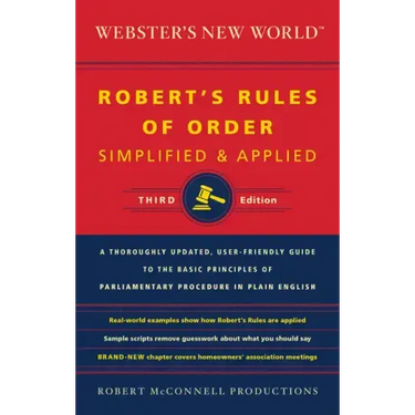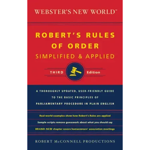 This essential and authoritative resource, based on the principles originally laid out in the classic Robert's Rules of Order, explains the often-confusing rules of parliamentary procedure in clear, simple language and shows how to apply them practically and effectively. Among its helpful features are sample scripts to help figure out what to say while conducting meetings, hands-on examples to show how the rules are applied, and timesaving tips to help make meetings more efficient. This thoroughly revised and updated user-friendly reference includes an ample index and cross-references for finding information quickly and easily. A completely new chapter on homeowners' associations covers restrictions, obligations, proxy voting, and covenants.