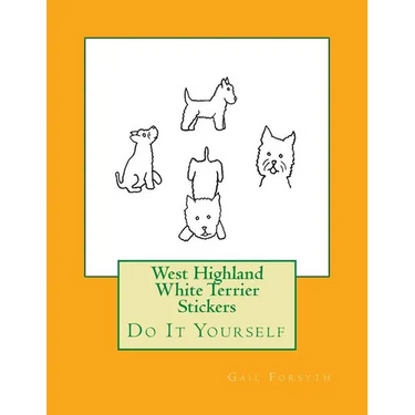 Stickers What child doesn't like them? Now they can make their own This book has over 100 do-it-yourself stickers for the child to make and use for endless projects. They will make their own glue for the stickers with the child-safe glue recipe, that is included in the book. There are over 60 hand drawn, West Highland White Terrier dog illustrations to color, cut out and make their own stickers. Some are puppies, some are adults and some are drawn as a cute cartoon. Along with over 40 dog word stickers such as Bark, I Love My Dog, Sit, Stay, and more. Crafting and stickers go hand in hand. They'll find some suggestions to use their stickers on books, picture frames, coin banks, treat jars and more. Some of the dogs do indeed have a cute whimsical smile. The child can draw any special markings on each dog, if they choose.