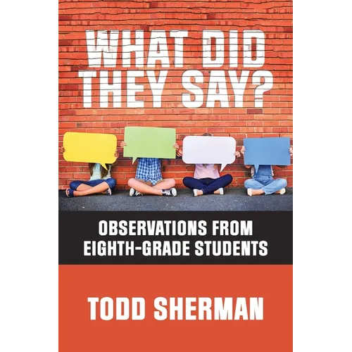 Nearly ten years into his teaching career, Todd Sherman affirmed that no matter our age, we all have moments when our mouths don't sync with our thoughts. While teaching language arts to eighth graders in August 2007, he overheard a student blurt, "Floyd is not a first name." After the quote gave Sherman pause, he and the students decided to begin logging their hilarious sayings on the whiteboard. He recorded the comments, and soon "Quote of the Day" became a staple in his classroom. In an entertaining collection that includes many of the stories behind the quotes, Sherman shares over six hundred outlandish comments of his students organized into thirteen categories: Geography, Food, Animals, School, Sports, Anatomy, Color, Time, Punctuation/Spelling, The Dark Side, Captain Obvious, Mea Culpa (his quotes), and Miscellaneous (what's left). Quotes include, "I was in New York for like two days yesterday," "Raisins are basically grandma grapes," "I did the homework in my head," "I always thought Santa watched me through the air vent when I got changed," and much more. What Did They Say? shares more than six hundred hilarious comments from eighth-graders and the stories behind them catalogued by their teacher for thirteen years.