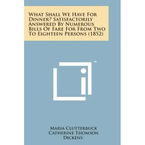 What Shall We Have for Dinner? Satisfactorily Answered by Numerous Bills of Fare for from Two to Eighteen Persons (1852) - Paperback