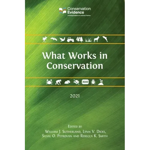 This book provides an assessment of the effectiveness of 2526 conservation interventions based on summarized scientific evidence. The 2021 edition containssubstantial new material on bat conservation, terrestrial mammal conservation and marine and freshwater mammals, thus completing the evidence for all mammal species categories. Other chapters cover practical global conservation of primates, amphibians, bats, birds, forests, peatlands, subtidal benthic invertebrates, shrublands and heathlands, as well as the conservation of European farmland biodiversity and some aspects of enhancing natural pest control, enhancing soil fertility, management of captive animals and control of freshwater invasive species. It contains key results from the summarized evidence for each conservation intervention and an assessment of the effectiveness of each by international expert panels. The accompanying website www.conservationevidence.com describes each of the studies individually, and provides full references.