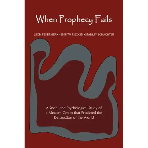 2012 reprint of 1956 First edition. Full facsimile of the original edition, not reproduced with Optical Recognition Software. When Prophecy Fails 1956] is a classic text in social psychology authored by Leon Festinger, Henry Riecken, and Stanley Schachter. It chronicles the experience of a UFO cult that believed the end of the world was at hand. In effect, it is a social and psychological study of a modern group that predicted the destruction of the world, and the adjustments made when the prediction failed to materialize. "The authors have done something as laudable as it is unusual for social psychologists. They espied a fleeting social movement important to a line of research they were interested in and took after it. They recruited a team of observers, joined the movement, and watched it from within under great difficulties until its crisis came and went. Their report is of interest as much for the method as for the substance."-Everett C. Hughes, The American Journal of Sociology.
