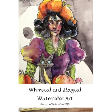 Welcome to the world of whimsical and magical watercolor paintings by the artist Seto van Boxtel done in 2023. Developed based on a question, posed to the people who know Seto's art best at the beginning of 2023, this art book includes paintings made throughout the year, some behind the scenes process, and anecdotes by the artist. Enjoy colorful full page watercolor spreads, pages of smaller paintings, sketches, and coloring versions of the art.