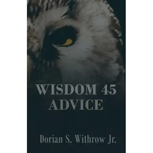 Wisdom 45 Advice is a creative self-help book directed towards shaping one's mind to lead a better life. This book covers a variety of topics such as learning yourself, money, relationships, progress, dealing with criticism, and much more. This is designed to promote growth and helped people make changes within themselves. The book also filled with ageless philosophical concepts and real-world application to help people make their hardship into tranquility.