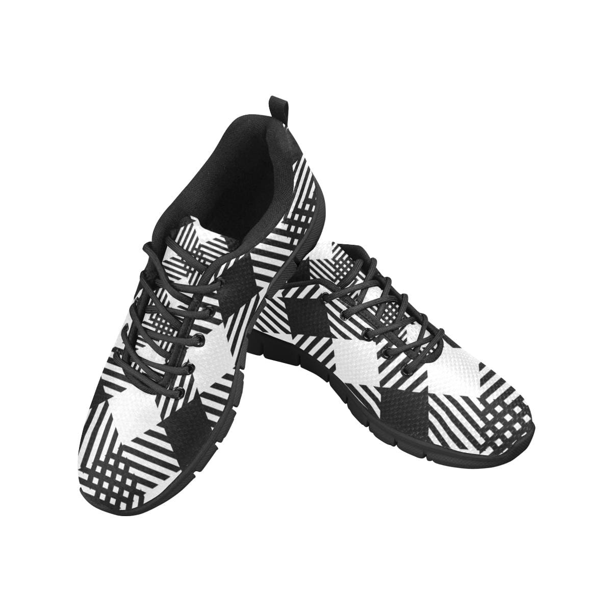 Womens Sneakers, Black and White Plaid Print Running Shoes by inQue.Style