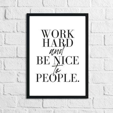 Work Hard And Be Nice To People Inspirational Simple Wall Home Decor Print by WinsterCreations™ Official Store